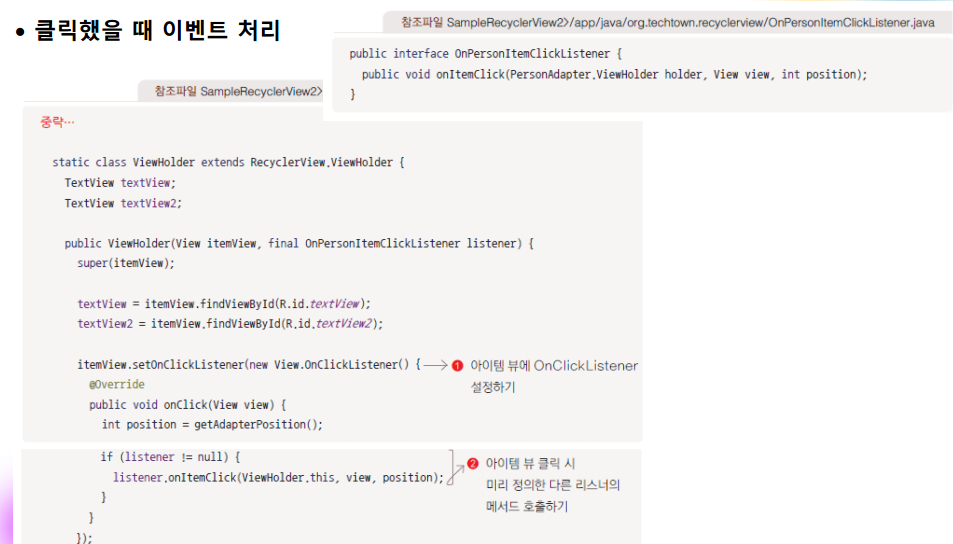 (어댑터에 리스너를 위한 변수를 선언해주고 진행함)