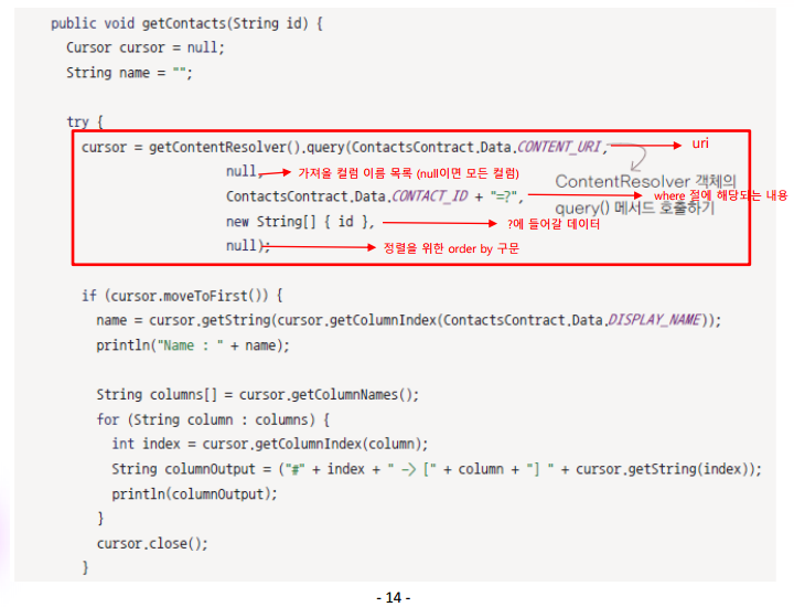 getContacts 메서드를 살펴보자.