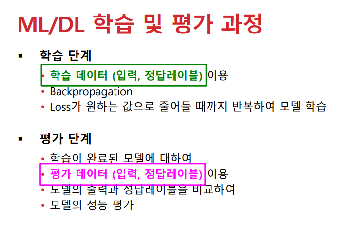 기존에는 데이터를 학습 데이터와 평가 데이터로만 구분했었는데, 여기에 검증 데이터를 추가해서 학습을 진행한다.