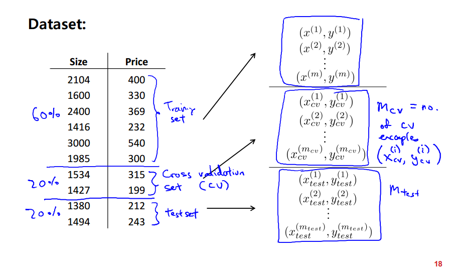 Evalutating a hypothesis를 수행한 다음에는 Model selection and training/validation/test sets를 진행한다.