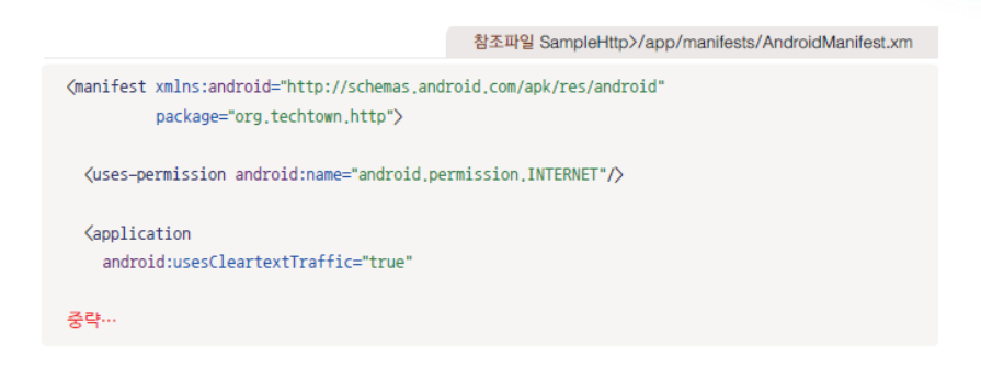 xml 파일에 인터넷 권한을 주고 모든 Http 주소에 접근할 수 있도록 한다.