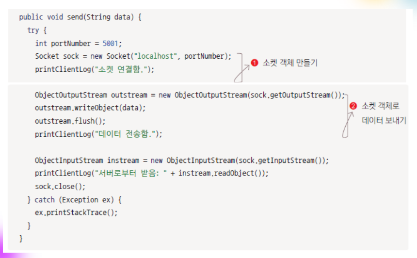 send() 메서드에 소켓을 생성하는 과정이 포함돼있다.