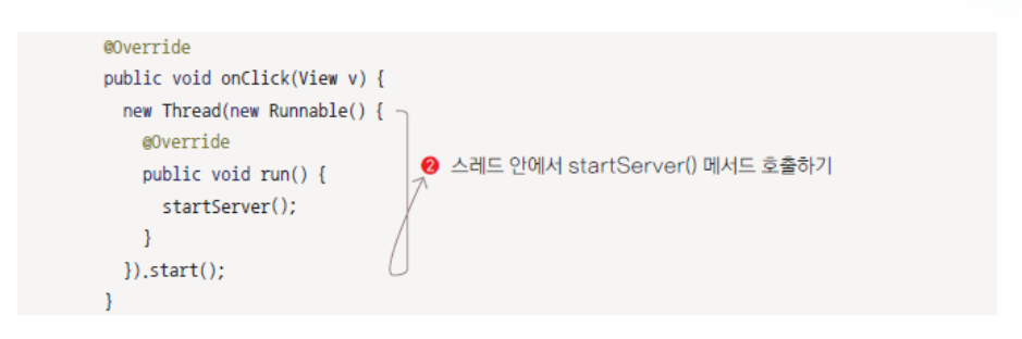 메인 쓰레드는 자기가 할 일을 수행하게 하고, 쓰레드를 통해 네트워킹 작업을 수행하도록 한다.