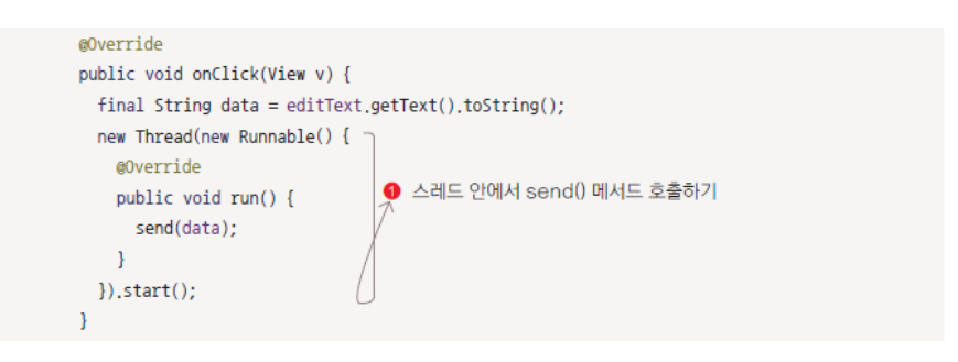쓰레드를 하나 만들고 실행했을 때 send() 메서드를 실행하도록 했다.