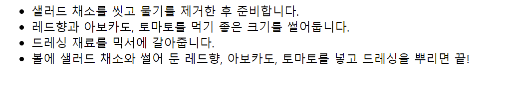 순서 있는 목록이라서 실행 시 숫자가 붙어서 나온다.