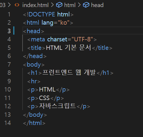 1. HTML5로 작성함을 알려준다.