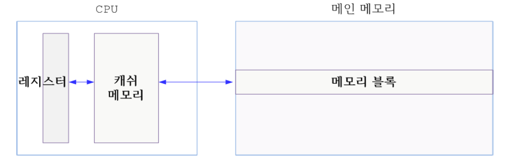 컴파일러는 빠른 동작을 위해 레지스터와 캐쉬를 먼저 탐색한 후 메모리 블록에 접근한다.
