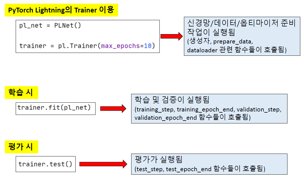 Pytorch Lightning은 Pytorch보다 더 높은 수준의 추상화를 지원해 구조화된 코드를 작성할 수 있도록 한다.