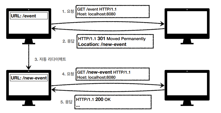 300번대의 응답 결과에 Location 헤더가 있으면 해당 위치로 자동으로 이동한다. (Redirect)