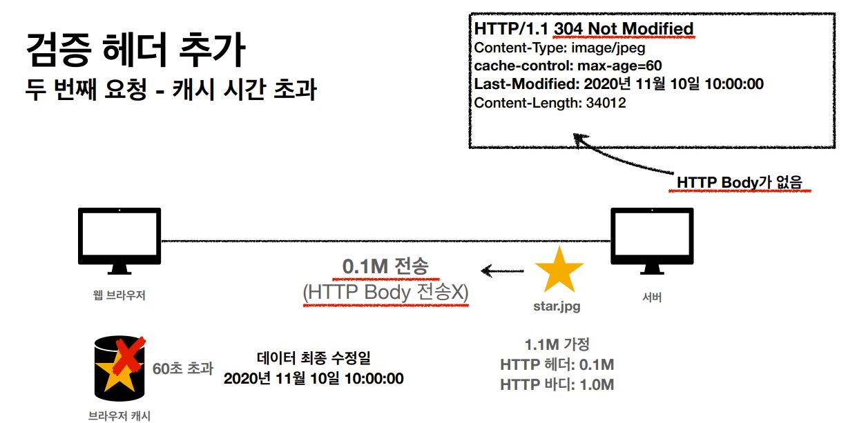 클라이언트와 서버에서 데이터의 최종 수정일이 같으면 서버는 클라이언트의 요청에 대해 메세지 바디를 생략한 응답 메세지를 보낸다.