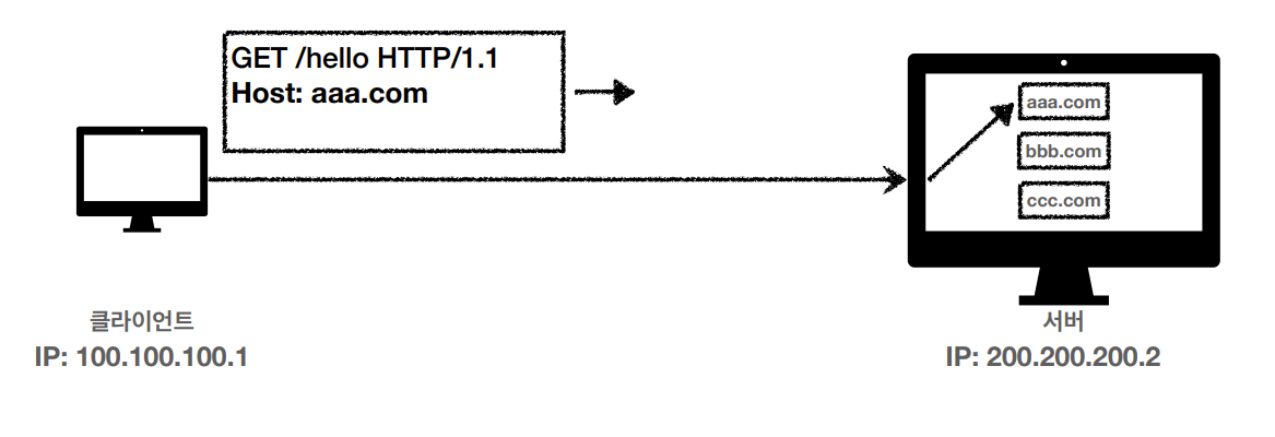 하나의 서버가 여러 도메인을 처리할 때 사용된다.