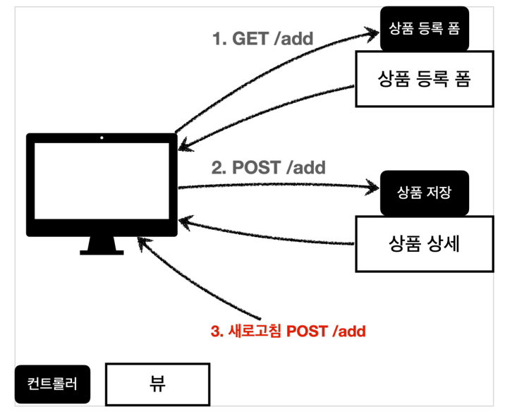 POST 로 상품을 등록하는 작업 뒤에 리다이렉트를 추가해서 문제를 해결할 수 있다.