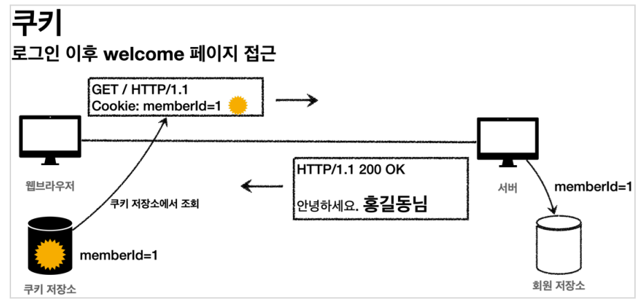 쿠키를 가지고 있는 클라이언트는 매번 요청할 때 마다 해당 쿠키를 보낸다.