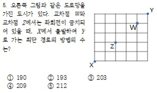 대충 이런 유형으로 특정 경로를 가면 안되게 설정해놓거나 특정 방향으로만 가야 되는 제약을 걸어두고 최단 경로의 수를 구하는 문제..