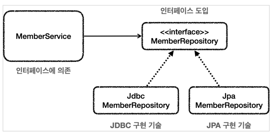 MemberRepository 클래스도 인터페이스로 변경해 구현 기술을 쉽게 변경할 수 있도록 하자.