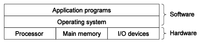 즉, 컴퓨터 시스템 위에 C 응용 프로그램이 올라왔고 이제 컴퓨터 시스템들이 동작해 응용 프로그램을 실행시킨다.