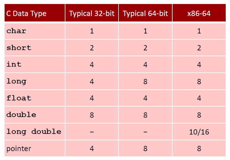컴퓨터에서 데이터를 표시할 때, 타입에 따라 사용하는 비트 수가 다름을 이해하자.