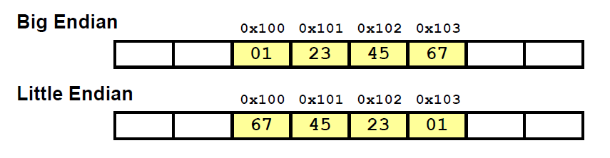 int x = 0x1234567 // 4바이트의 워드이고, x의 주소는 0x100 이다.
