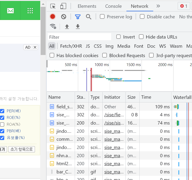 이런 경우 개발자 도구에서 네트워크 옵션을 사용하자.