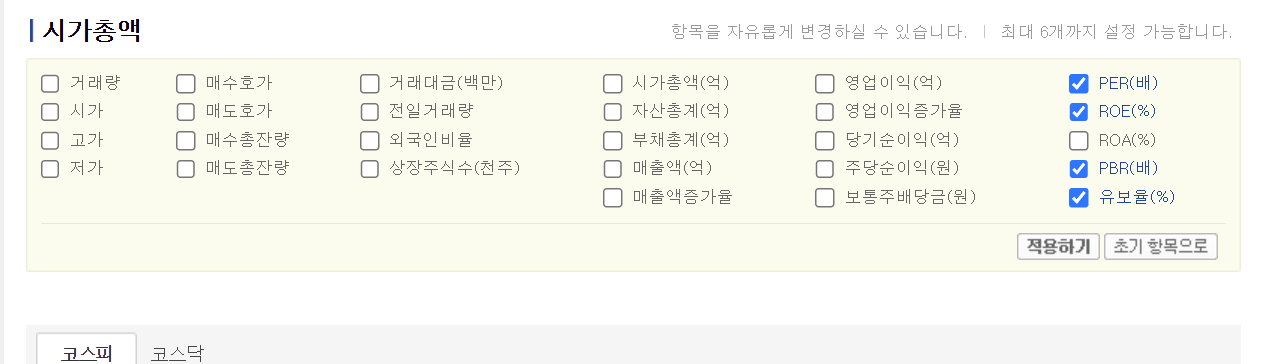 url = f"https://finance.naver.com/sise/field_submit.naver?menu=market_sum&returnUrl=http://finance.naver.com/sise/sise_market_sum.naver?&page={i}&fieldIds=per&fieldIds=roe&fieldIds=pbr&fieldIds=reserve_ratio"