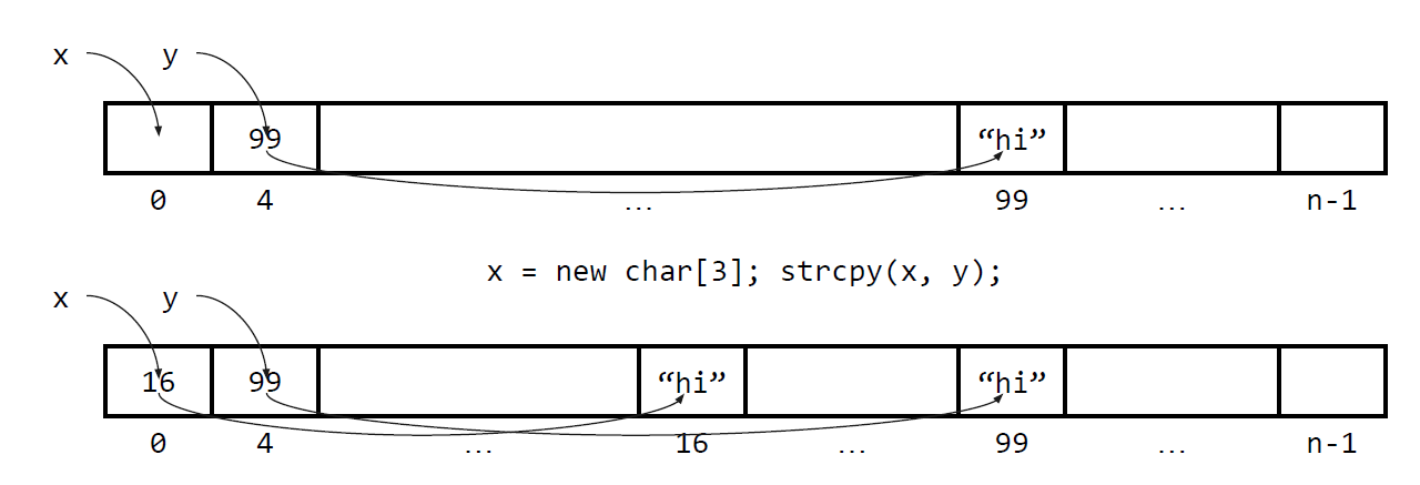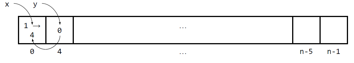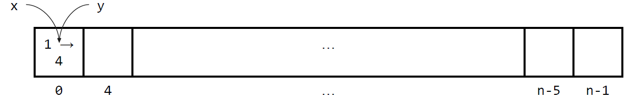 여기서 할당하는 메모리는 Stack 메모리이기 때문에 함수가 끝나면 사라진다. (위의 그림에서 y가 사라진다)