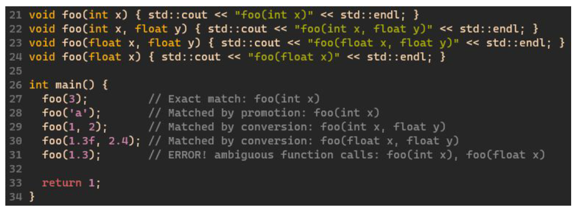 C++에서 함수 오버로딩의 가능 여부는 함수의 signature에 따라서 결정된다.