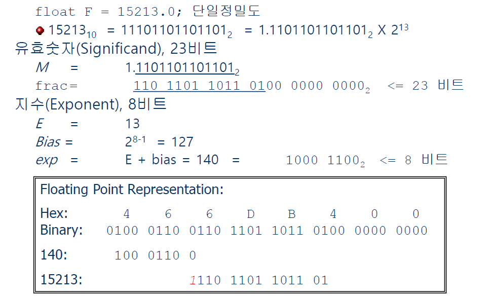 IEEE 표준은 이 형태로 소수를 표현한 후 S M E를 인코딩해서 저장한다.