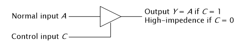 제어 입력이 0이면 출력이 끊어지고 high-impedance state가 된다. (출력이 끊어져 로딩되지 않는다)