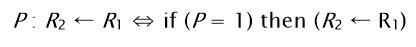 P는 0또는 1을 가지는 변수로 P가 1일 때 레지스터 R1의 값을 레지스터 R2로 전달하라는 의미이다.