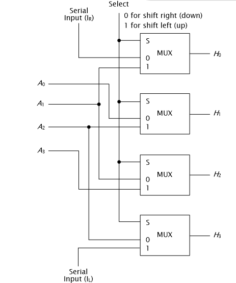 선택 입력 S가 0이면 오른쪽으로, 1이면 왼쪽으로 시프트한다.
