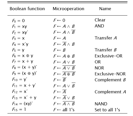 논리 연산은 마이크로 연산에서 사용되는 경우와 제어함수에서 사용되는 경우가 서로 다르다.