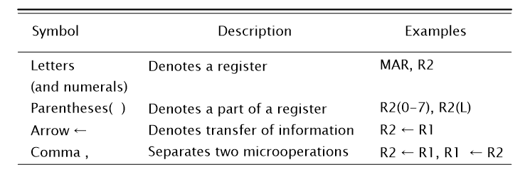 read와 write 모두 ← 연산으로 처리한다.(DR ← M[AR] / M[AR] ← R1 / M은 메모리 워드)