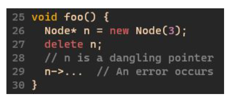 dangling pointer로 인해 여러 오류가 발생할 수 있다.
