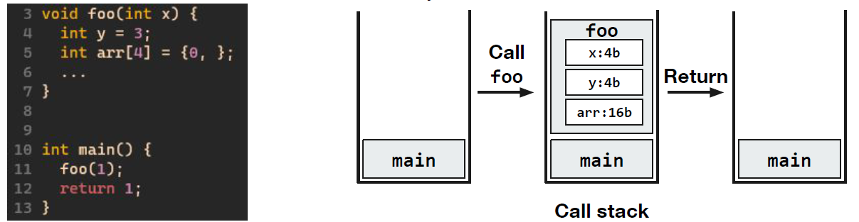 메모리는 선형으로 구성돼있고 컴파일러의 판단으로 특정 부분은 스택 메모리로 사용되고 또 어떤 부분은 힙 메모리, static 메모리로 정하고 사용한다.