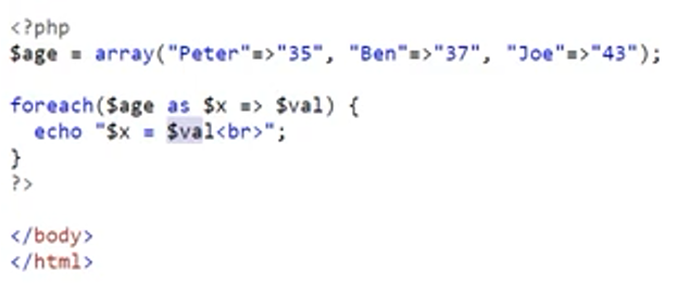 array가 딕셔너리 형식으로 구성됐을 경우 foreach에 변수를 두 개 할당 가능