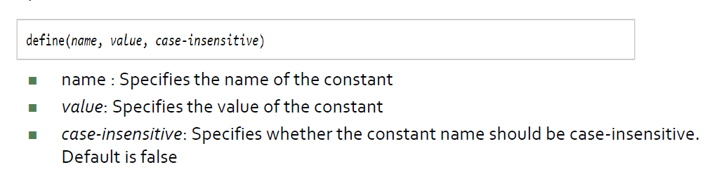 상수를 정의할 때는 $를 사용하지 않음.