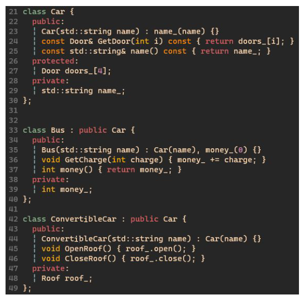 자바에서는 extends 를 사용해서 상속받았지만, C++은 접근제어자와 상속하는 클래스명을 사용해서 상속받는다.
