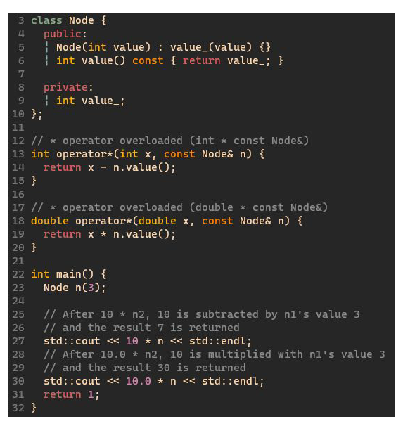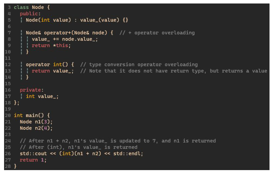 12번째 줄을 살펴보면 타입 캐스팅 연산자도 오버로드했음을 알 수 있다.
