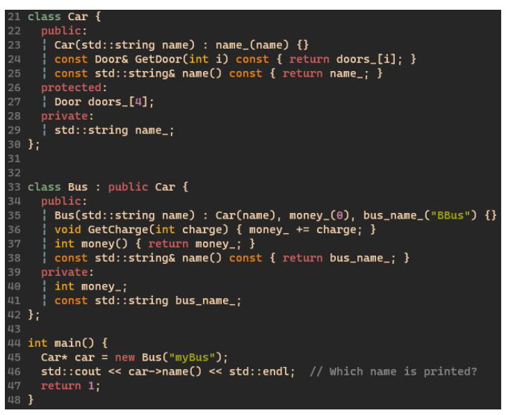 Car* car = new Bus("a") 이렇게 포인터를 통해 주소를 접근하도록 하는건 괜찮다.