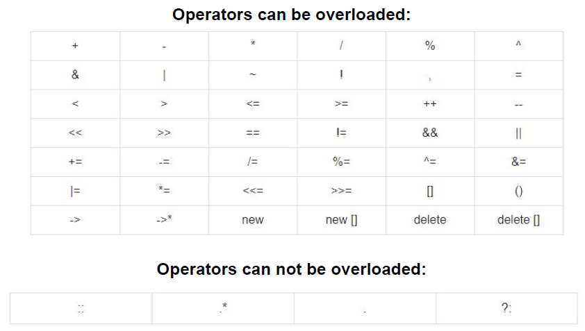 몇몇 연산자들은 클래스 내부에서만 정의될 수 있으니 주의하자. (https://en.cppreference.com/w/cpp/language/operators)