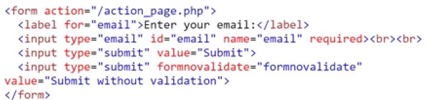 html태그에 따라 validation을 수행하는 경우가 있는데, validation을 무시하도록 설정할 수 있다.