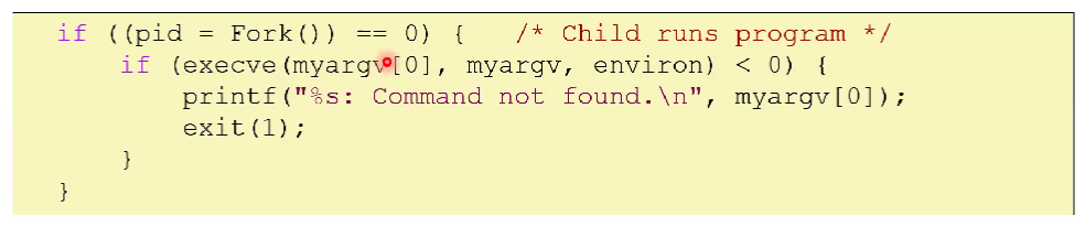 int execve(char * filename, char* argv[], char *envp[]) : filename을 현재 프로세스의 환경변수를 이용해 code / data / stack 정보를 덮어쓴다.