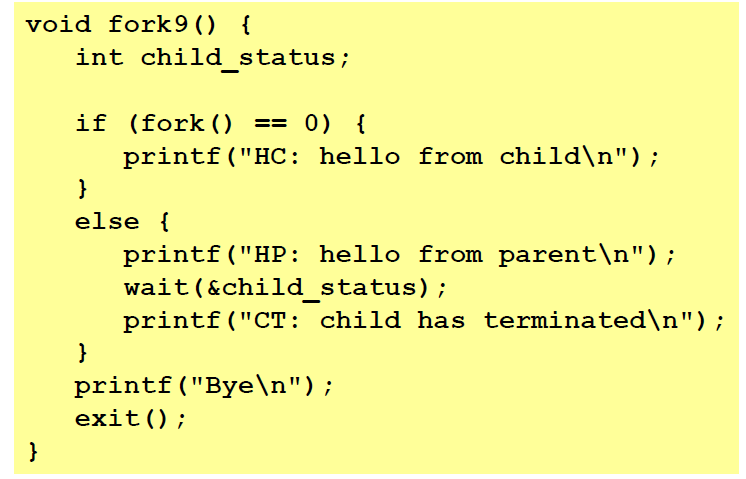 int wait(int *child_status) : 자식 프로세스의 종료와 동기할 때 사용한다.