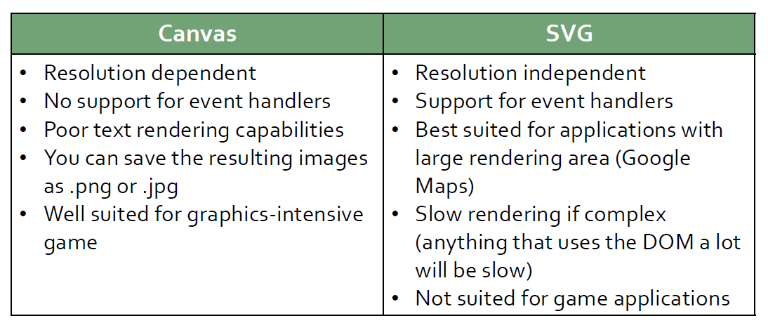 canvas는 자바스크립트의 메서드를 사용해 그림을 표현하고 svg는 태그 기반으로 그림을 표현한다.