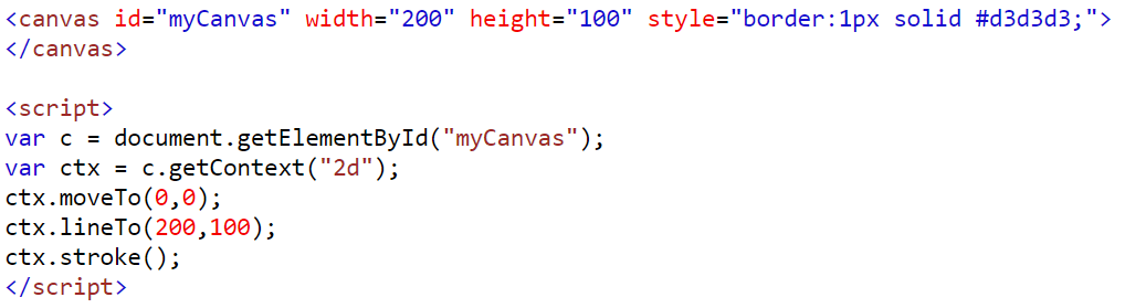 canvas 태그를 사용해 지정한 위치에 선을 긋는 간단한 예시이다.