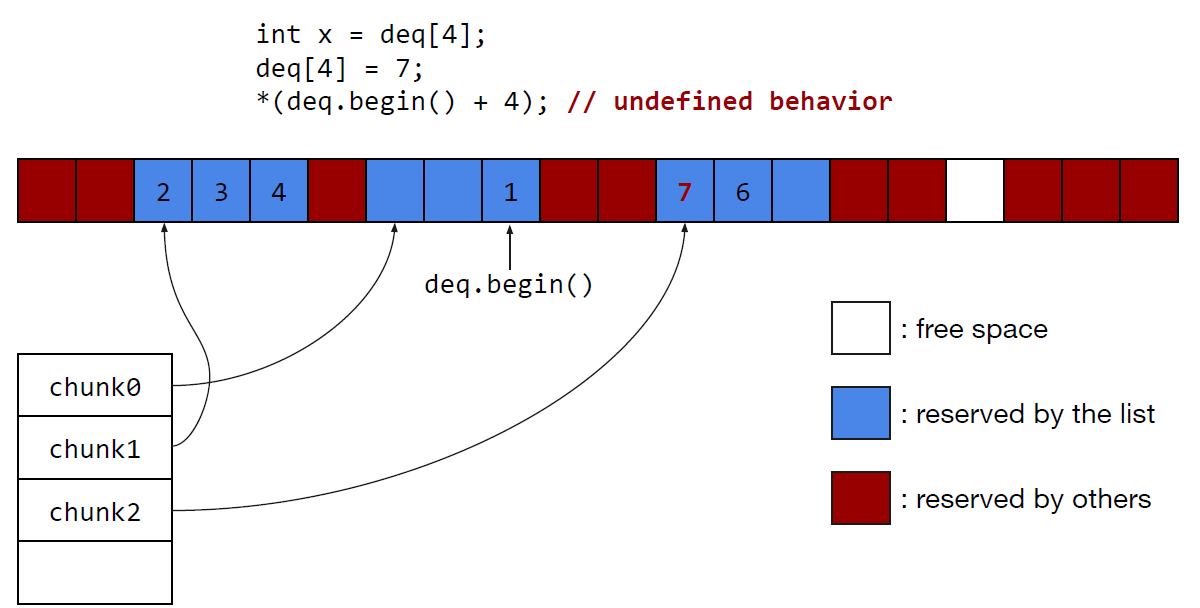 위의 상황에서 pop_front 함수를 실행하면 chunk0은 사라지고 begin은 2 3 4 chunk의 시작 부분으로 위치하게 된다.