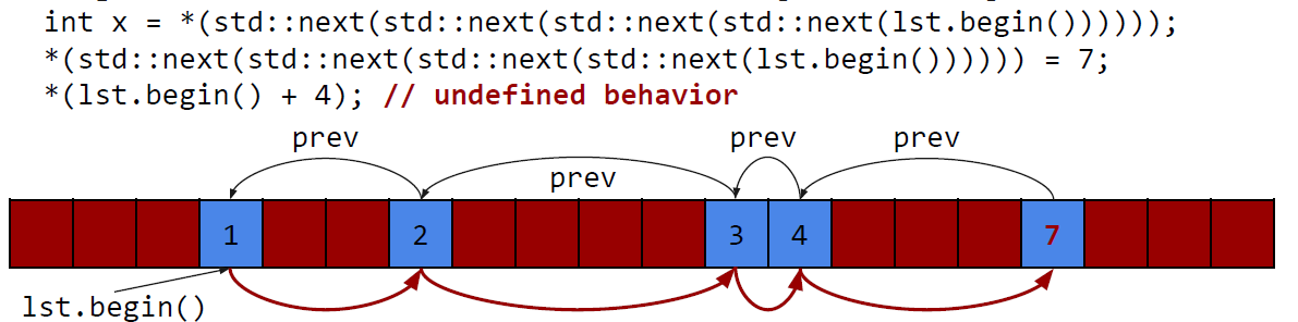 Random Access는 가능하지만, begin() + n 방식으로는 요소에 접근할 수 없다.