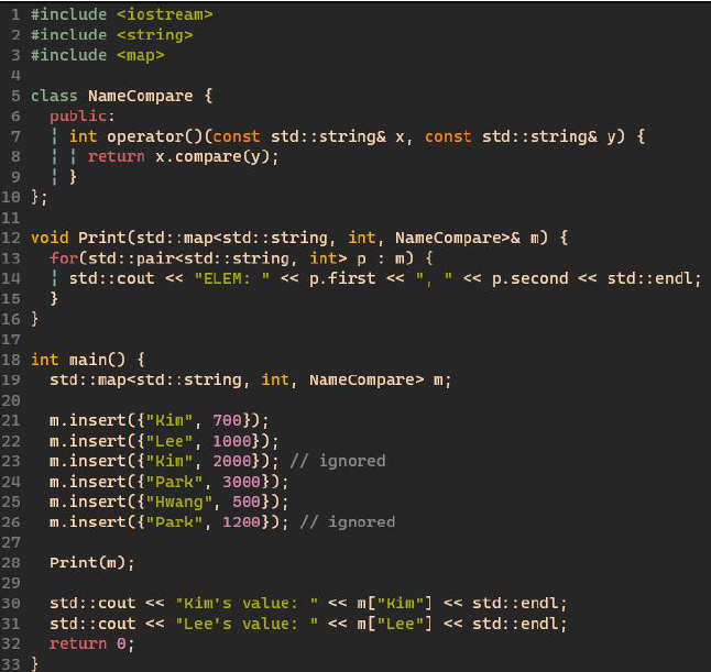 key 값이 중복인지 확인하고 특정 방식으로 정렬되어야 하기 때문에 역시 functor가 사용된다.
