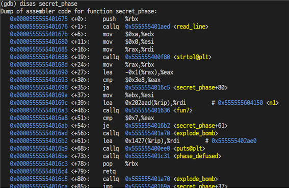 phase_6까지 defuse 했으니 secret_phase로 접근하는 조건을 갖췄다.