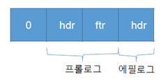 패딩, 프롤로그, 에필로그 부분으로 나눠지고 각각의 부분들은 여러 메모리 블록을 할당 할 때 유용하게 사용될 예정이다.